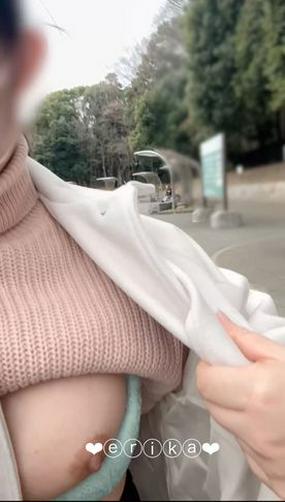 【18歳Gカップえりかの自撮り】☆彡 ノーパンノーブラ、ロンT1枚の格好で100円ショップで露出オナニー!!そのあとお店の外の駐車場でディルド使ってオナニーしてたらトラックが来ちゃって…///