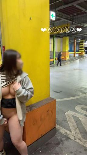 【18歳Gカップえりかの自撮り】☆彡 家電量販店の駐車場で全裸オナニーしてたら急に人が来て、服も取りに行けず車の陰に隠れるという大ハプニング!!それに負けずに最後はちゃんと逝っちゃった…///