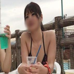 【素人/個撮】23歳茶髪ポニテの美人ビキニお*さんをナンパ。美脚スレンダーボディ抱きしめ激ピスハメ撮りセックス。